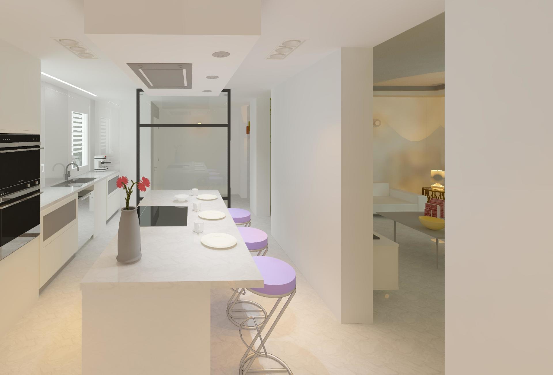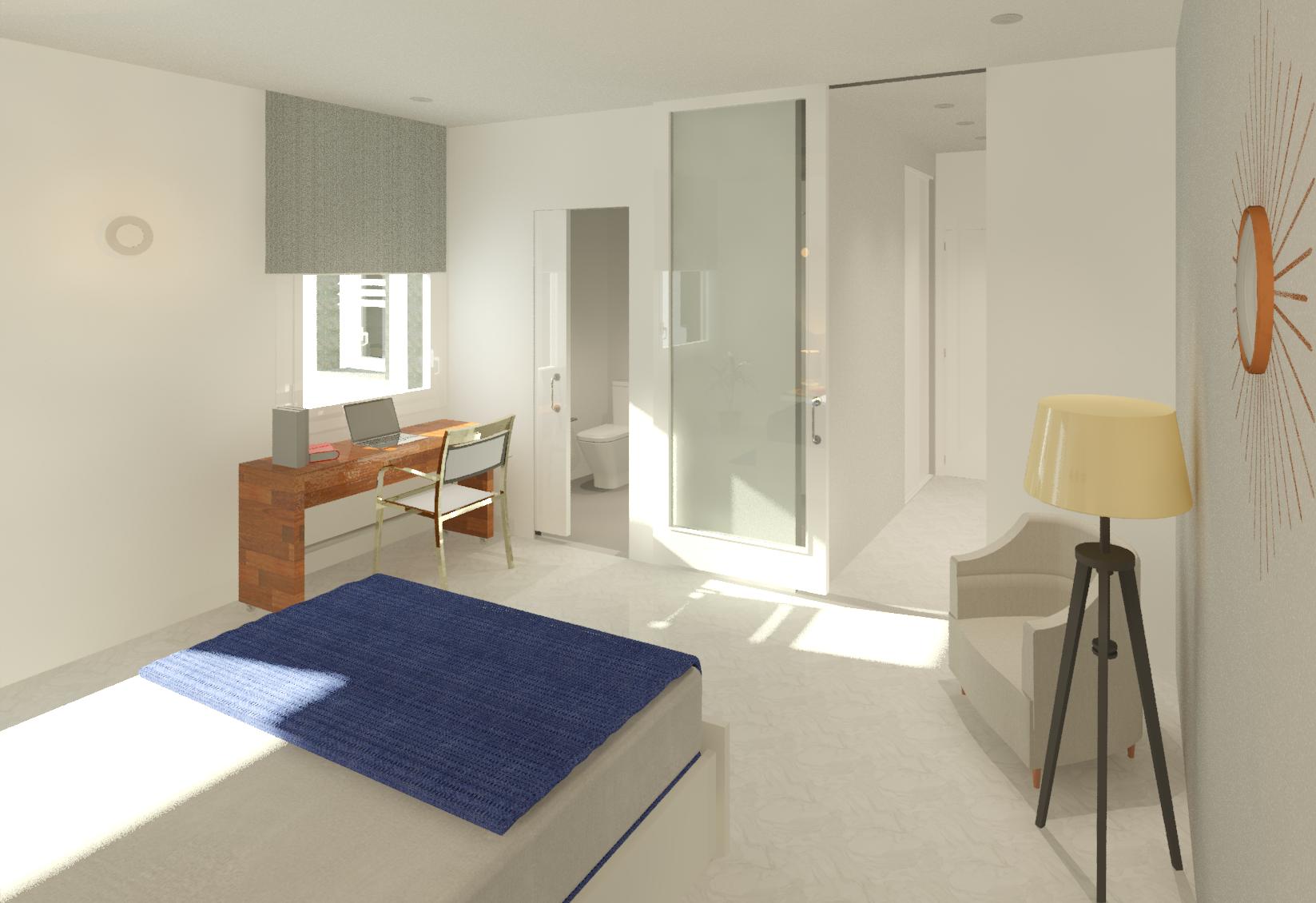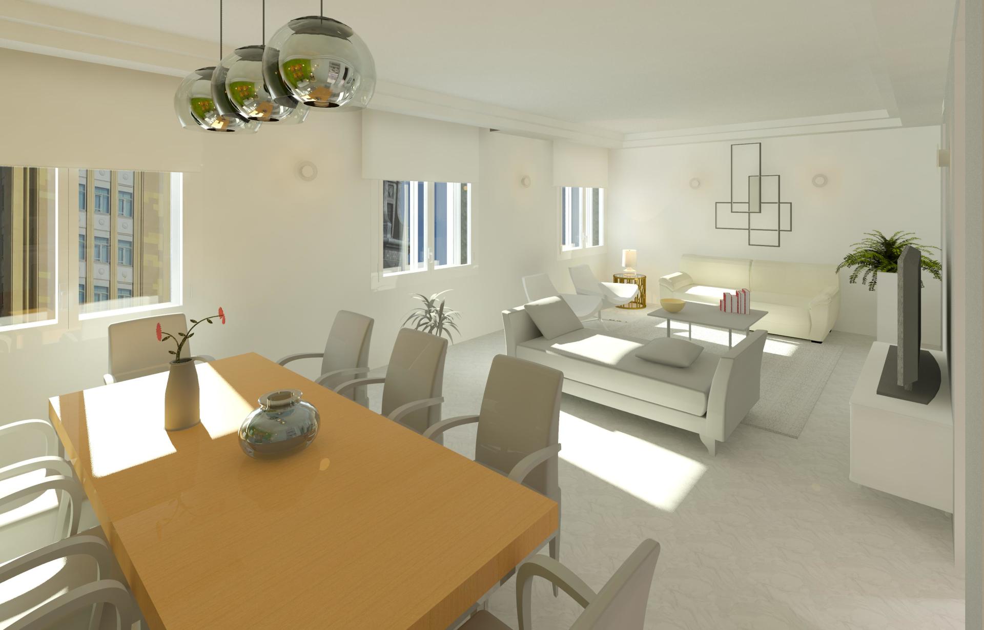 Transformación de una oficina en dos viviendas, situada en el centro histórico de Madrid, con una distribución formada por sala-comedor-cocina, dos dormitorios suite provistos de baño y vestidor y otros dos dormitorios dobles con baño, así como vestíbulos y distribuidores.