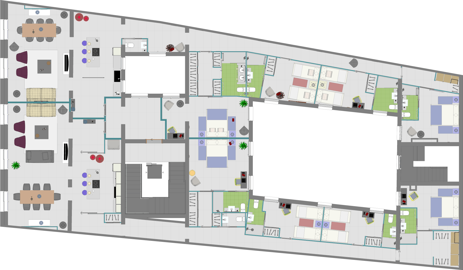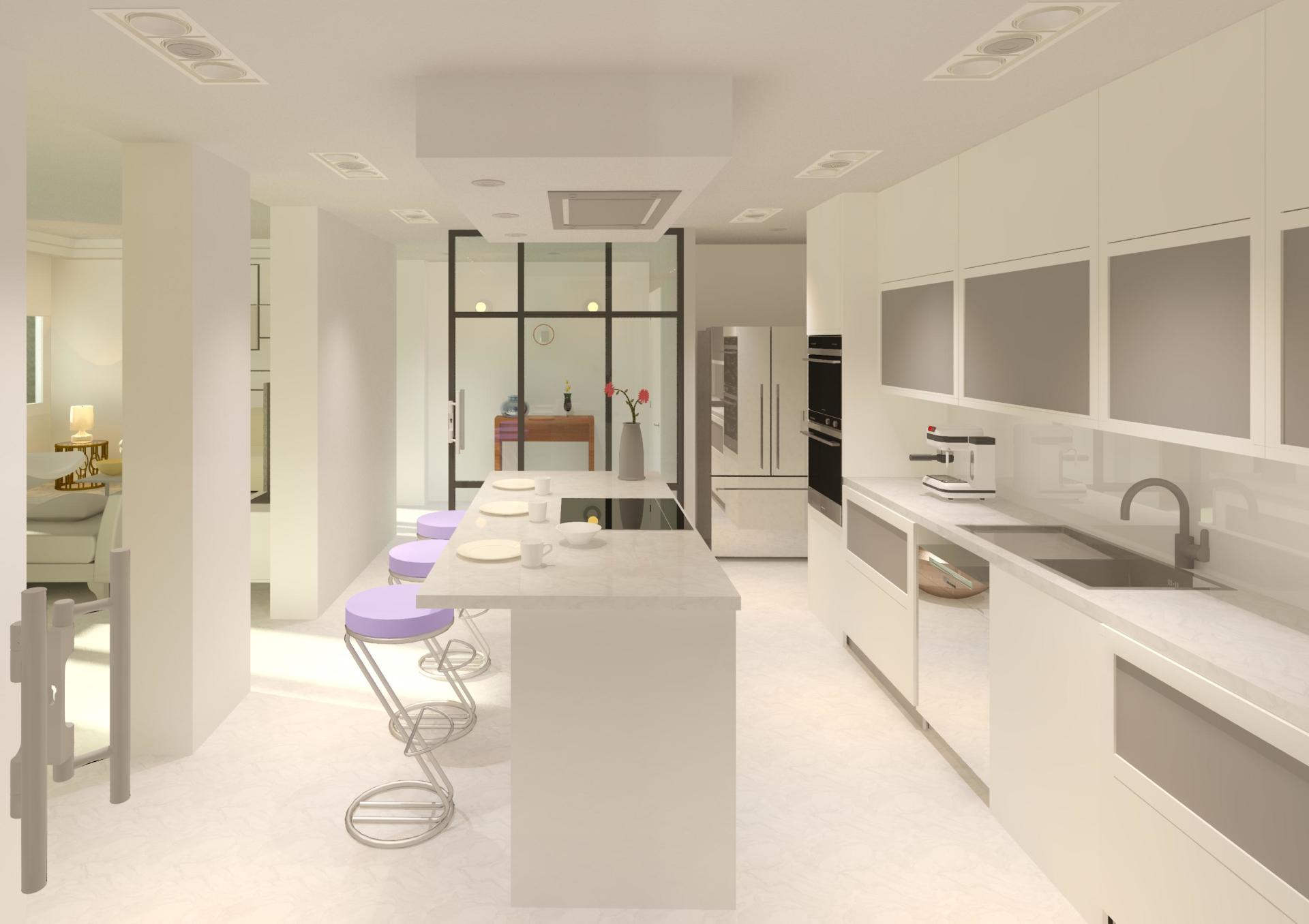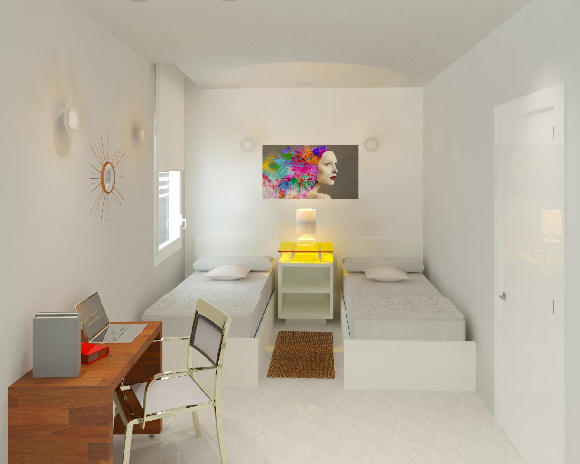 Transformación de una oficina en dos viviendas, situada en el centro histórico de Madrid, con una distribución formada por sala-comedor-cocina, dos dormitorios suite provistos de baño y vestidor y otros dos dormitorios dobles con baño, así como vestíbulos y distribuidores.