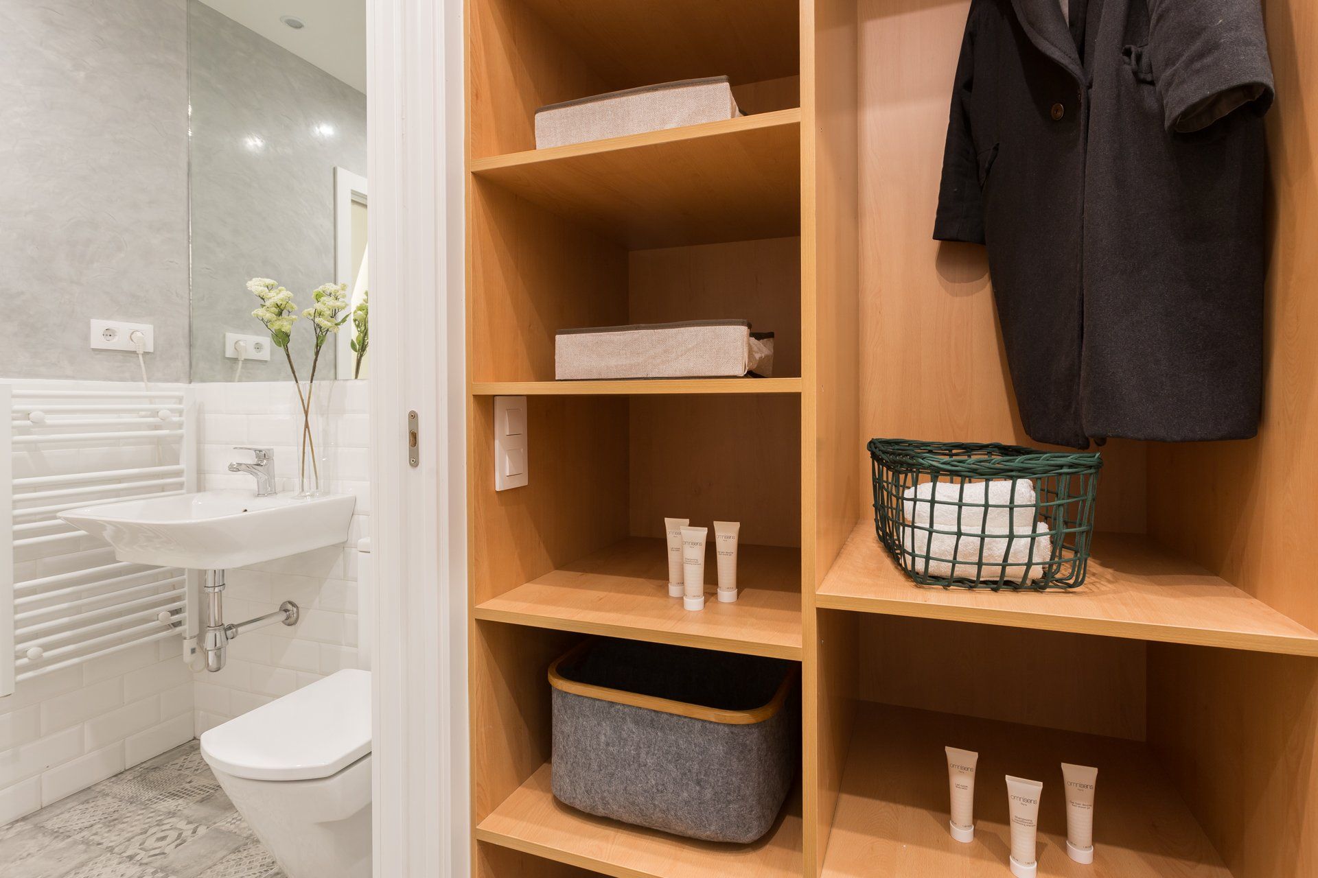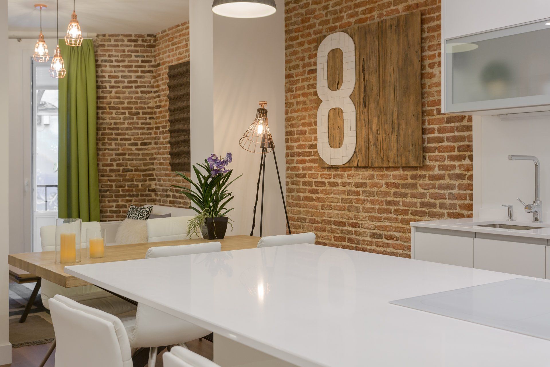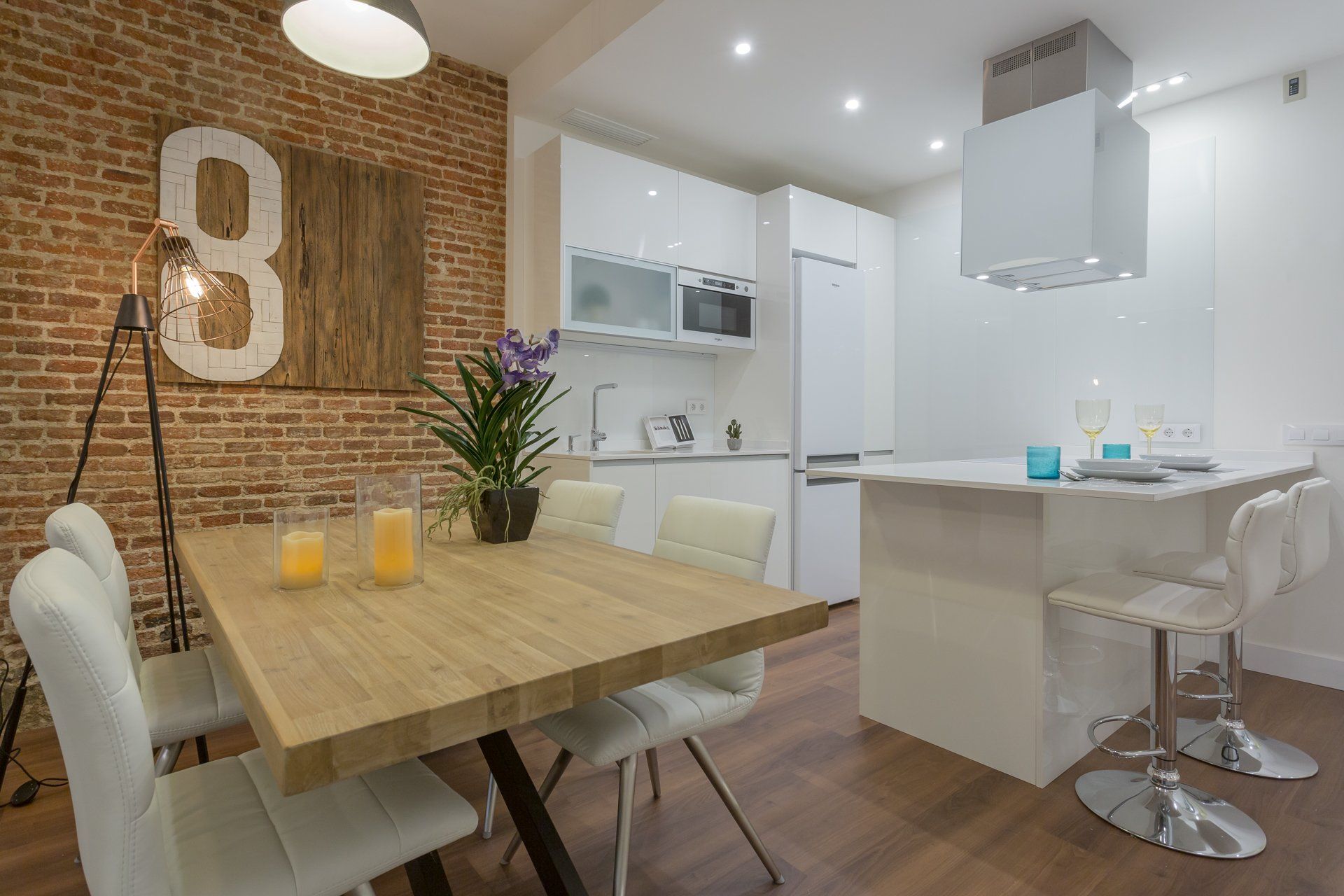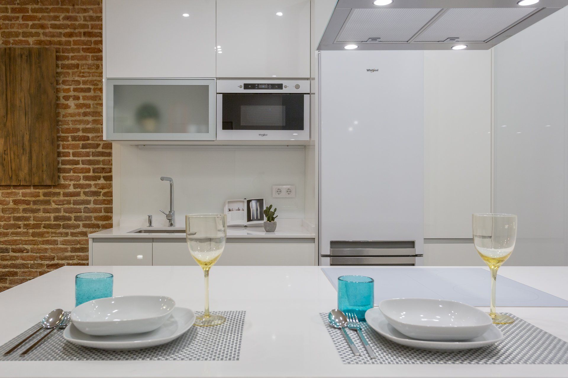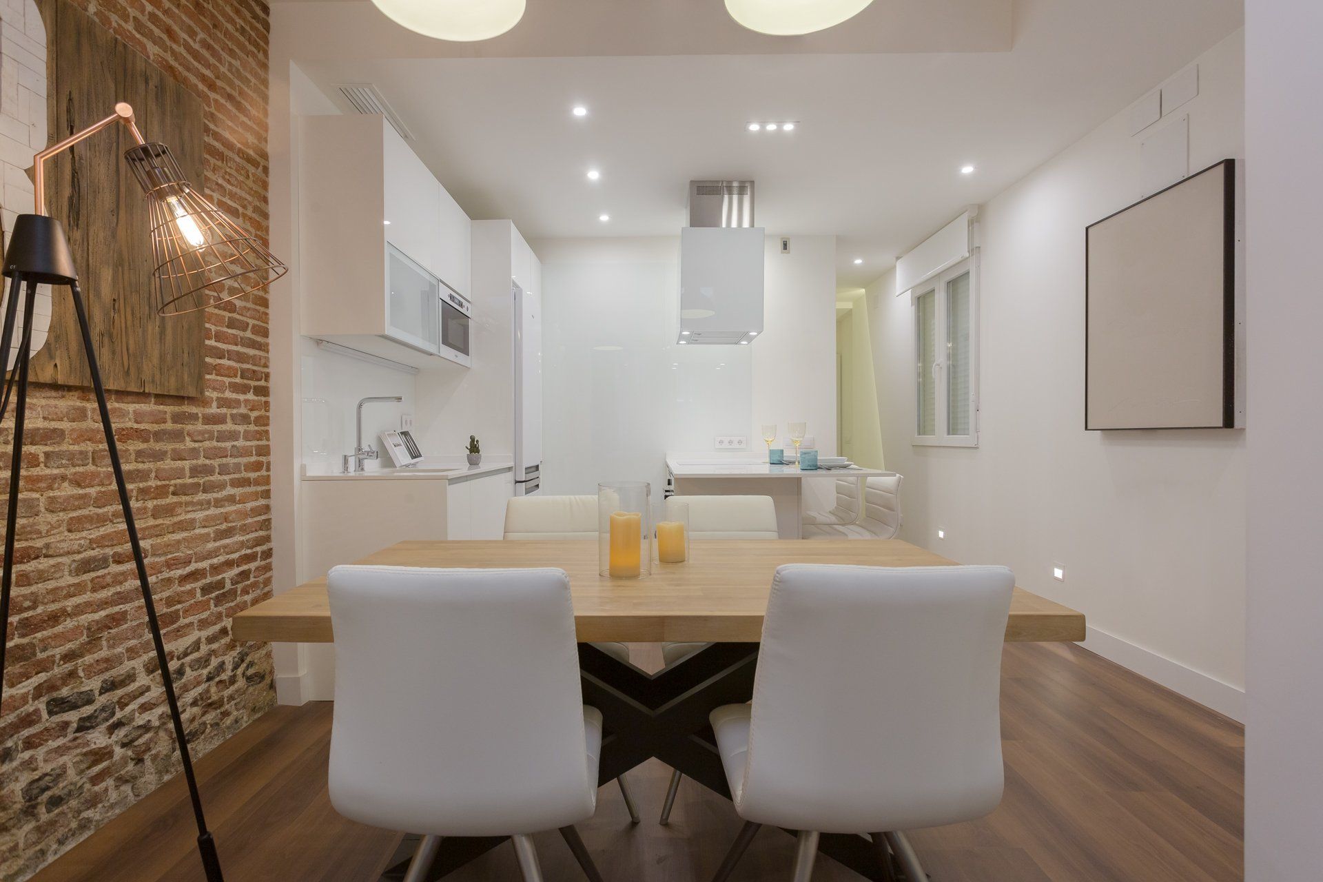 Reforma integral de una vivienda de 70 metros cuadrados, emplazada en el centro histórico de Madrid, disponiendo de un espacio abierto, para sala comedor y cocina, además de dos dormitorios dobles en suite, provistos de baños y vestidores.
