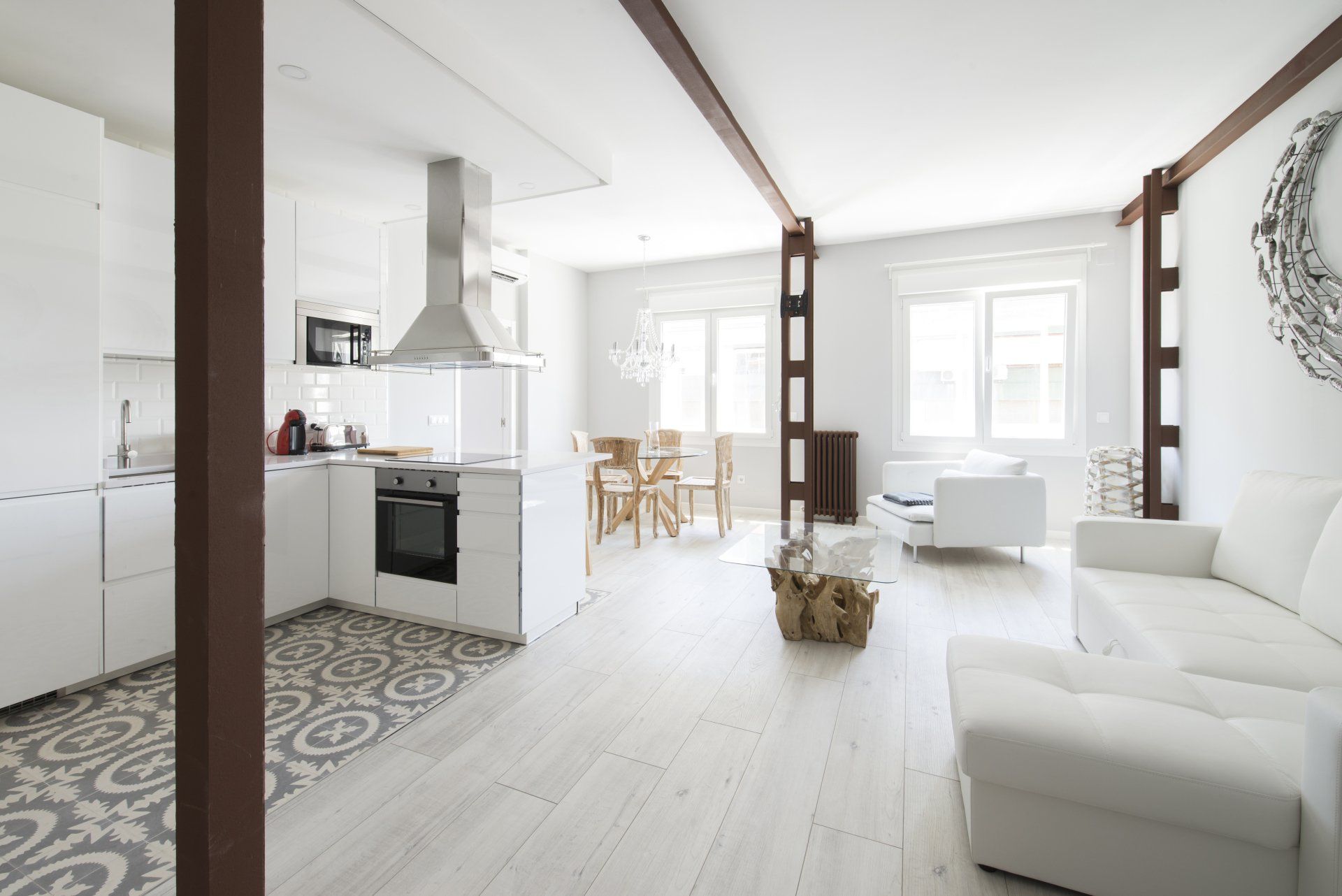 Reforma integral de una vivienda de 100 metros cuadrados, emplazada en el barrio del Retiro, disponiendo de un espacio abierto, para sala comedor y cocina, además de dos dormitorios dobles en suite, provistos de baños, aseo de cortesía y cuarto de lavado y plancha